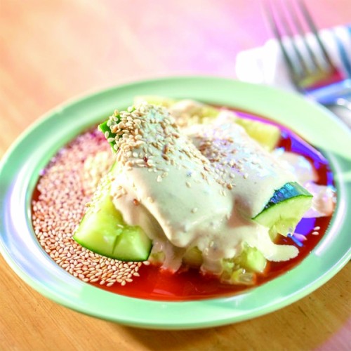 博温的墨西哥风味餐厅在拍黄瓜里加入味道浓郁的芝麻酱,其中含有酸橙、孜然和牛至叶粉;惠特尼博物馆新开的“无名”餐厅(Untitled)在荞麦面里加入拍黄瓜、小萝卜和鞑靼金枪鱼;一风堂拉面馆(Ippudo)则把黄瓜轻拍,用芝麻油和大蒜调味,制作“让人上瘾的芝麻油黄瓜”。