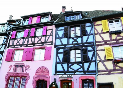 木头支架搭建起的多面型屋顶,横斜交錯,每一间屋子都不尽相同,搭上不同颜色的扇窗,再配上五彩缤纷的墙面,或鹅黄粉嫩,或浅绿清新,或红艳得饱和,或深褐得神秘,给科尔马带来了浓浓的童话气息。