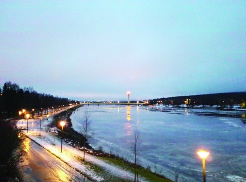 凯米河早已结冰,站在大桥上,河面吹来的冷风让人睁不开眼,走过横穿城市的凯米河,便是欧纳斯山,这座平缓的山非常适合徒步,尤其是在下过大雪之后,整座山都是白茫茫的一片,安静而又美丽,不时还有人从山顶向下滑雪,甚是快活。