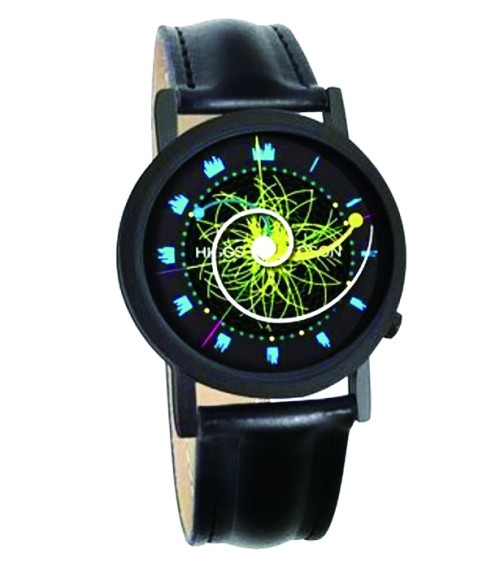 科学家认为希格斯玻色子能给予其他粒子质量,艺术家据此设计了这款手表——根据设计者的思路,在情人节当天,这款手表的秒针每走一圈,便代表希格斯玻色子在逐渐释放能量衰变成其他粒子。这款表在亚马逊网站售价42.95美元(约合人民币282元)。