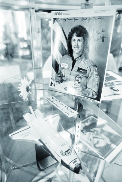 1986年1月30日,新罕布什尔州康科德高中纪念罹难的女教师麦考利夫。 |
