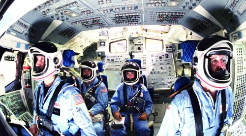 “挑战者号“发射前一个月,宇航员们进行最后的训练。 |