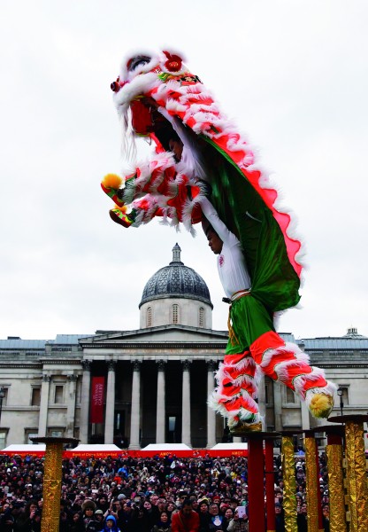 2月14日,英国伦敦,市中心的特拉法加广场上,一年一度的中国新春庆典盛大登场。据《欧洲时报》报道,当天的活动吸引了近50万游客的目光,热闹非凡。