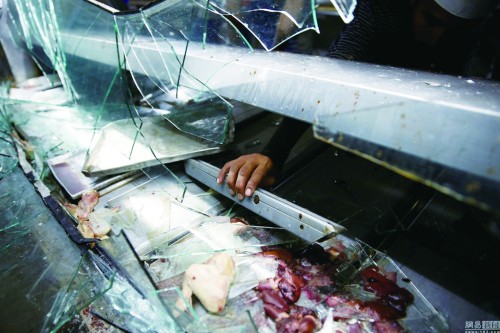 6月14日下午,民众高喊着“我们需要食物”,冲击了当地的超市和面包店。饥饿的人群破开一扇扇铁门,抢夺水、面粉、土豆、调味品和其他任何能找到的东西,只留下被破坏的冰箱和翻倒的货架。