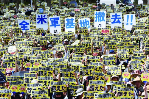 6月19日,日本冲绳,大约6.5万人参加反美军基地集会,要求驻冲绳的美国海军陆战队全部离开,并且从根本上修改给予驻日美军司法庇护特权的协定。
