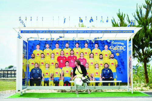 法国波尔尼谢,一座公交车站用瑞典足球队的合影做装饰。