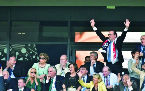 6月26日,法国里昂,法国总统奥朗德观战欧洲杯比赛。当天,东道主法国队在里昂球场2比1击败爱尔兰队挺进8强。