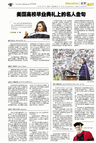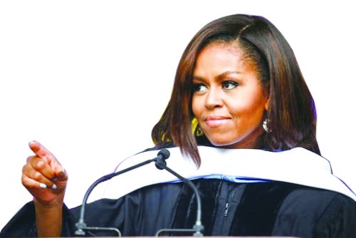 米歇尔·奥巴马今年毕业季分别在杰克逊州立大学和纽约城市学院发表了毕业典礼演讲。在有教化非洲裔美国人传统的杰克逊州立大学,她不可避免地提到了种族问题,鼓励学生们,“昂起你的头,然后像奥巴马那样做”。