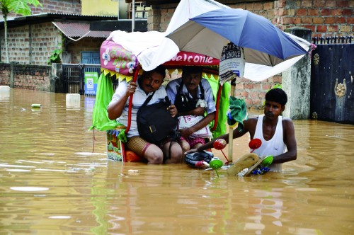 7月7日,印度古瓦哈蒂,当地连降暴雨,引发洪水。