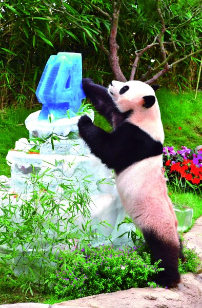 为庆祝两只熊猫在韩国度过的第一个生日,爱宝乐园用熊猫喜欢的冰块、竹子等制作了3层大蛋糕,提供滑梯、不倒翁、吊床等供其玩耍,还奉上从庆尚南道河东郡空运来的夏季滋补品——寒竹。