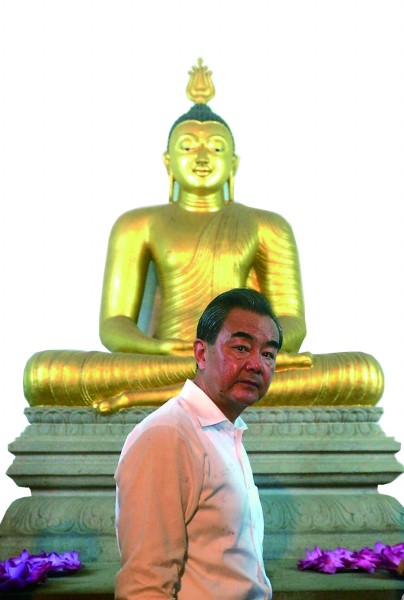 7月9日,斯里兰卡科拉尼亚,中国外交部长王毅参观凯拉尼亚王家大寺院。
