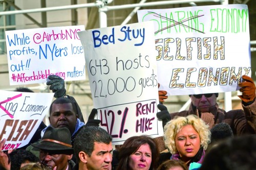 “旅游者数量在增加,但酒店客房价格还没恢复到金融危机前的水平。这是因为,假设你有100间客房,现在突然变成了140间,而这多出的40间来自Airbnb。”纽约市酒店业协会主席维杰·丹达帕尼(Vijay Dandapani)向“美国之音”网站抱怨道。Airbnb及其房主不仅抢生意,还不遵守酒店规章制度。比如酒店有消防指挥系统和安全系统,而Airbnb的房间无法提供任何保护措施;再比如税收问题。