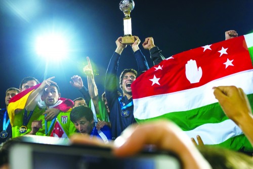 阿布哈兹队欢庆夺冠。