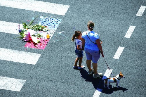 7月18日是法国尼斯恐袭案3天国丧期的最后一天。当天中午12点,各地教堂钟声响起,全法民众默哀一分钟。在恐袭发生地尼斯海滨大道,数千人聚集,悼念遇难者。