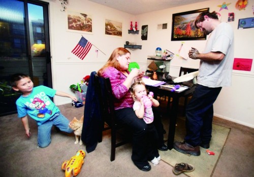 缺钱是这对夫妇选择不结婚的另一个关键原因。多年来,谢里丹靠做餐厅服务员和披萨饼送货司机维持生计,怀孕后在联邦政府的财政补贴下开始考大学。安德伍德是汽车修理人员,但能接到的活儿越来越少,经常一个星期只能工作20个小时。