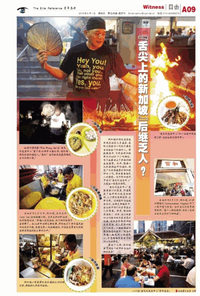 “老巴刹美食中心”是饕餮客们的最爱,那里聚集了各种新加坡美食摊档,从沙爹到海鲜烧烤,应有尽有。但游客即使逛遍老巴刹,也难觅年轻厨师,这让老师傅们的身影显出几分落寞。毕竟,路边摊厨房狭小、简单,较为艰苦的工作条件和不算丰厚的收益,使许多青年厨师投身更宽敞、收入更高的现代化饭店。一些老摊主对英国路透社表示:“现在的年轻人缺乏耐心和进取心,不愿踏踏实实学习制作小吃的手艺。”