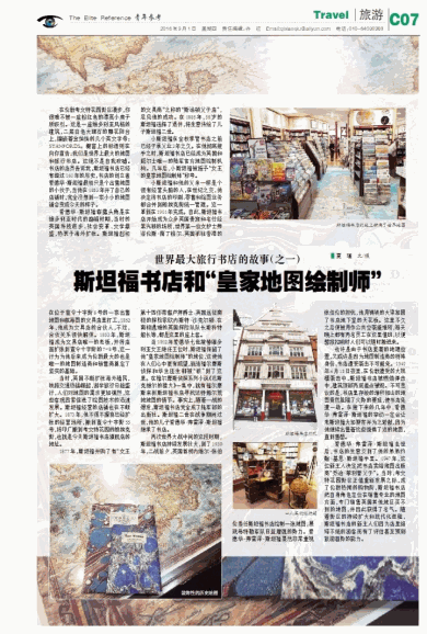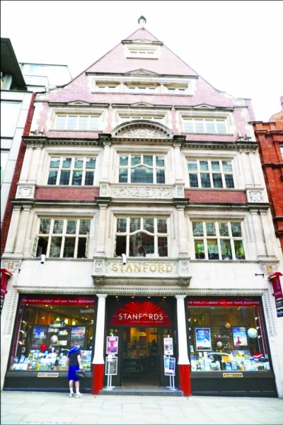 在伦敦考文特花园街区漫步,你很难不被一座粉红色的漂亮小房子所吸引。这是一座维多利亚风格的建筑,二层白色大理石的雕花阳台上,镶嵌着金灿灿的几个英文字母:STANFORDS。橱窗上的标语则在向你宣告:我们是世界上最大的地图和旅行书店。这绝不是自我吹嘘。书店的店员告诉我,斯坦福书店已经有超过160年的历史,书店的创立者爱德华·斯坦福最初只是个出售地图的小伙子,当他在1853年开了自己的店铺时,完全没想到一家小小的地图铺会变成今天的样子。