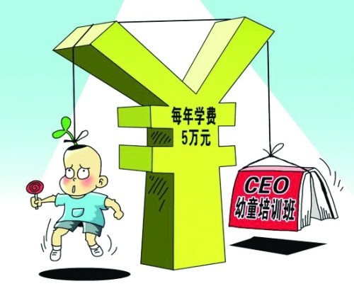 今年6月,在北京工作的IT技术员张浩(音)把3岁的女儿送进了CEO辅导班。他要为女儿每周两次、每次40分钟的课程支付一年1.2万元的学费,这还是折后价。他犹豫了一下,最终掏了钱。“他们承诺我,女儿接受培训后会变得更加自信,更容易成为朋友间的中心。”他告诉英国《每日电讯报》。