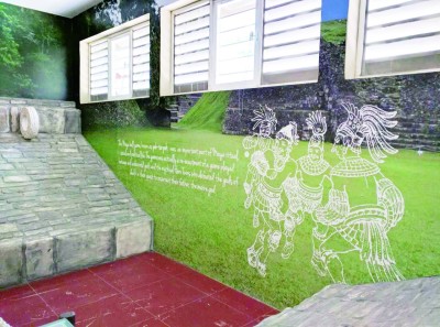 汽车行驶至墨西哥城最大的绿地——查普特佩克森林公园(Chapultepec),一簇簇悦目赏心的紫色花树引领我们步向风格简约庄重的墨西哥国家人类学博物馆(Mexico National Museum of Anthropology)。这座据称在墨西哥城400多个景点中排名第一的博物馆,是拉丁美洲最大、最著名的人类学博物馆,其建筑融印第安传统风格与现代艺术为一体,基本结构宛如一个硕大的长方形四合院。博物馆门口是一座用整块大石雕成的“雨神”,院内有一根图腾大铜柱,柱上有一个巨大的蘑菇顶盖,自上而下循环向四周喷洒清水,恰如“雨泉”倾盆。