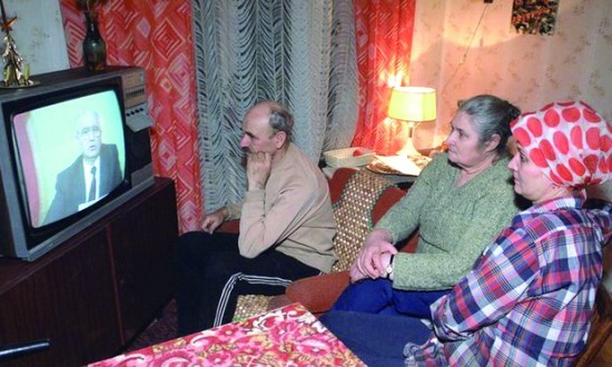 1991年12月25日,苏联人在电视机前观看戈尔巴乔夫的告别演说。