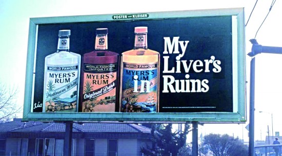 广告牌“奢享麦尔斯牌朗姆酒”被改成了“我的肝已毁”。