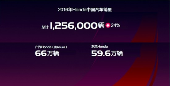 近日,在本田中国新年媒体大会上,本田中国与广汽本田和东风本田两家合资公司,携手发布2016年业绩,并发布2017年目标和未来战略。“2016年,广汽本田的销量为66万辆,东风本田的销量为59万辆,本田在中国市场的总销量达到125万辆,较上年度增长24%。”本田中国本部长水野泰秀表示,他2010年来到中国的时候,批评就扑面而来,大家说“本田太保守”、“缺少适合中国的产品”、“新技术应用得太晚”等,这些至今令他记忆犹新。