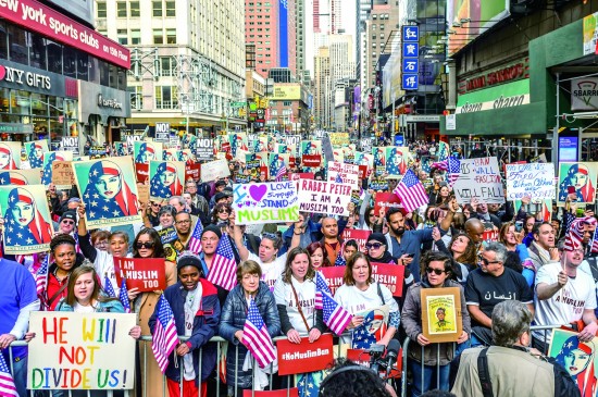 当地时间2月19日,美国纽约民众参加“我也是穆斯林”游行,支持穆斯林群体,抗议特朗普政府移民政策。图片来源CFP