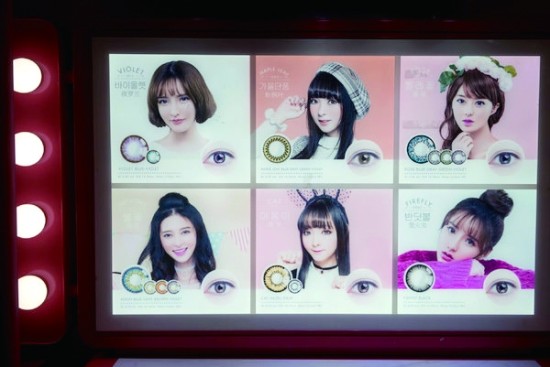 北京西单某购物中心内的隐形眼镜广告。大眼睛被认为是美的特征。