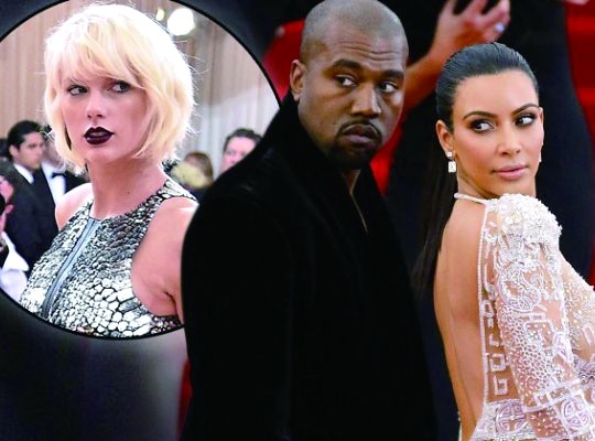 金·卡戴珊夫妇与泰勒·斯威夫特(左)的口水战引来大批粉丝“助阵”。