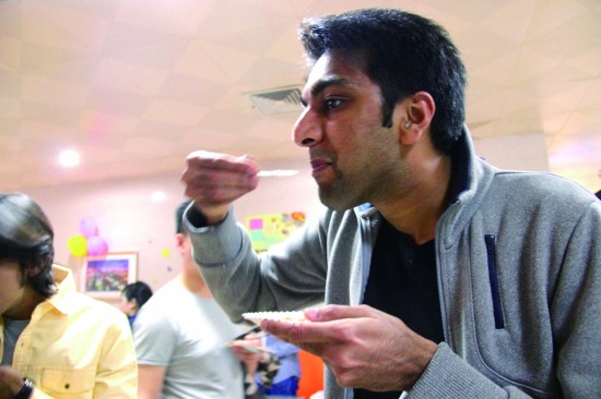 2016年4月10日,中国科学技术大学举行第三届美食文化节,一名巴基斯坦留学生正在品尝美食。