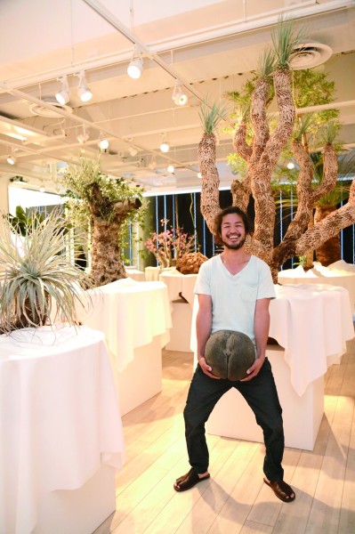 起初,这些运抵日本的植物,都被收进了西畠家的后院。2012年,他独立门户创办工作室“天空植物园”,正式将自己热爱的植物作为事业来经营。现在,植物园温室里栽种着来自世界各地的3000多株稀有植物。不同于家族生意只向客人提供植物材料,西畠的天空植物园更侧重园艺项目的整体规划,城市景观设计、花卉设计、室内绿化以及生活美学打造等,都是他的业务范围。