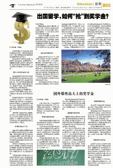 助学金往往由学校以外的机构提供,比如研究所、企业或个人。胡芳告诉《青年参考》记者,这类资助计划往往会有一些特殊的限定条件,比如提供给学习物理专业的女生,或者只面向研究东亚文化的学生,等等。如果想申请助学金,就需要详细了解自己是否符合这类助学金的要求。