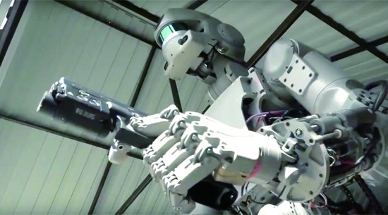 罗戈津提到,叙利亚战争凸显了机器人在艰难环境下的重要性。FEDOR原本是为了太空救援工作而开发的,但工程师们并不否认其潜在的军事价值。只要将FEDOR手中的工具换成枪械,它就会摇身一变,成为令人胆寒的“大杀器”。