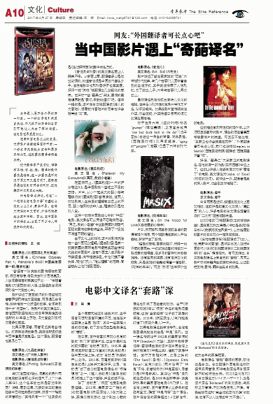 随着中国电影工业的发展,优秀影片陆续进军国际市场,一个好名字无疑能为宣传和票房添砖加瓦,这就要求翻译者精益求精。