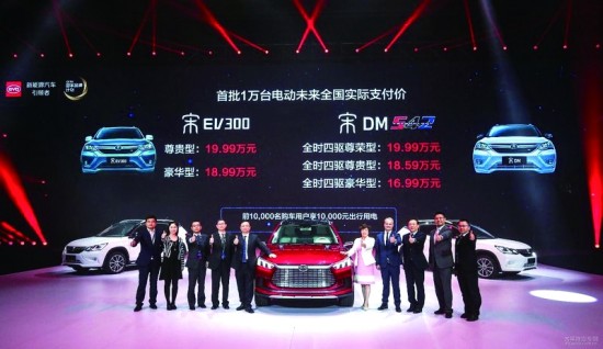 4月17日,比亚迪在上海举办了盛大的品牌盛典,旗下新能源车型——宋DM(插电式混动版)和宋EV300(纯电动版正式)上市,加上宋盖世版(传统燃油版),宋家族合力完成了燃油、双模、纯电三线布局,“全擎全动力”格局正式开启。