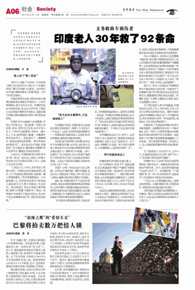 印度法律委员会称,该国50%的交通事故遇难者如果能在车祸发生一小时内得到救治,就不会失去生命。怀德深知这60分钟的宝贵,在过去30多年里,只要自己生活的城市德里有车祸发生,他就会竭尽所能以最快速度赶往现场,将伤者送进医院。