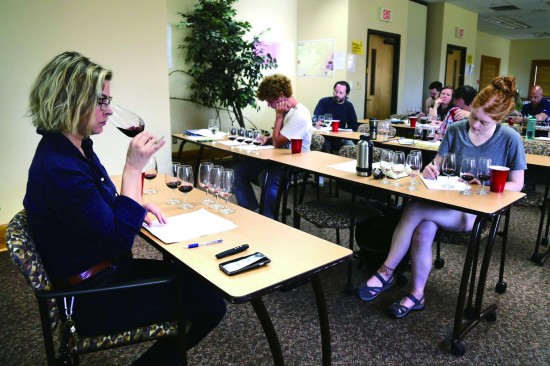 瓦拉瓦拉社区学院的讲师在给学生们讲解葡萄酒品鉴的相关知识。