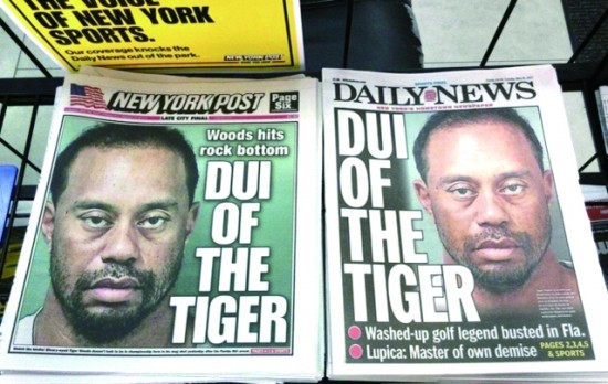 逮捕伍兹后,警方公布了他的“收监照”。这张大头照展示了一个蓬头垢面、异常憔悴的“老虎”伍兹,而这绝不是他本人和赞助商乐于看到的形象。