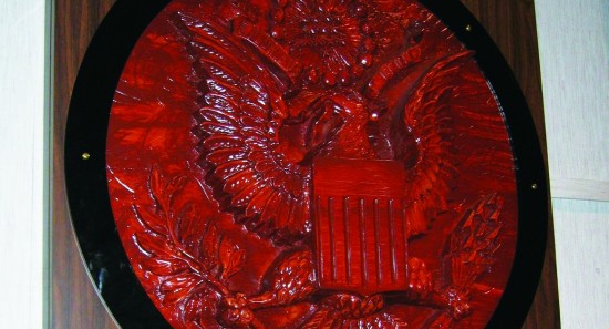 如果不是1952年的一次偶然发现,“金唇”窃听器可能服役更久。当时,美方安保人员在无线电中偶然听到了美国外交家乔治·凯南的声音,却实在搞不清声音从哪里来。经过一番费力的搜寻,美国特工的目光聚焦在苏联人7年前赠送的一件礼物上。