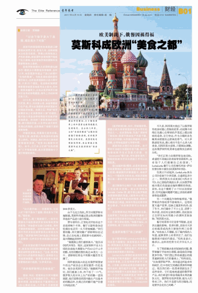 许多实惠的餐厅向俄罗斯菜系转变,甚至找回苏联时期的食谱,这类菜肴的材料完全取自本土。“过去,俄罗斯餐厅80%的食材依赖进口,食物禁令让市场受到震荡。俄罗斯美食复兴是现在餐馆的流行趋势。”扎伊采夫说。