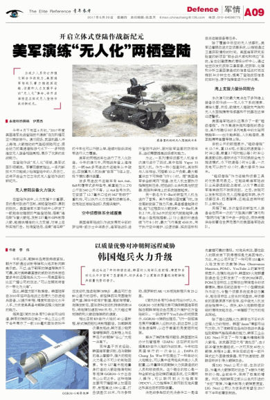 在登陆作战“无人化”领域,美军试图引领潮流。军事观察家指出,一系列新技术不仅能减少抢滩登陆中的人员伤亡,还将开启全方位立体式无人登陆作战的新纪元。