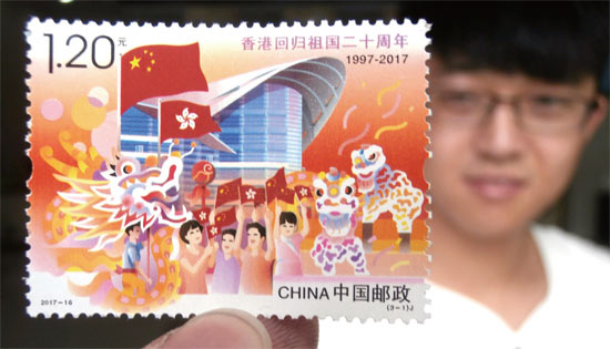 7月1日,由中国邮政发行的《香港回归祖国二十周年》纪念邮票面向全国发行。