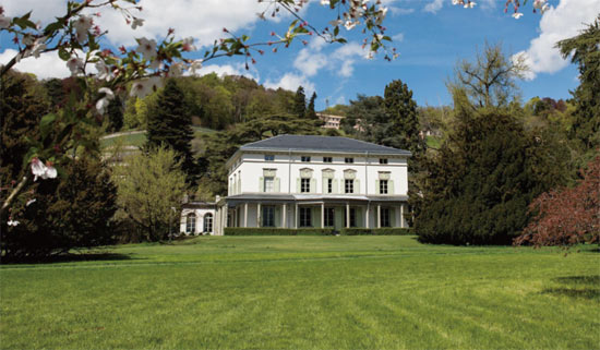 从沃韦驱车而上,一路盘山就到了“卓别林世界”博物馆。博物馆占地15公顷,包括两座主体建筑和一个大花园,其中一座是卓别林夫妇和孩子们居住的三层白色小楼,楼内有15个房间。一进楼门就看见卓别林的蜡像向来宾挥手致意;一层是客厅和餐厅,墙上贴满了卓别林全家的生活照和他在瑞士期间与要人朋友的照片,卓别林和周恩来总理的合影也端挂其中。