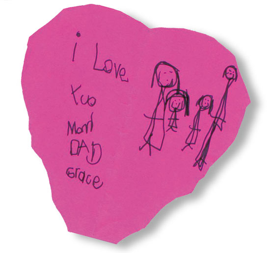 “我爱妈妈爸爸,还有格瑞斯”,“我和妈妈在荡秋千”,“很抱歉,我生病了”……每张纸条的旁边都配有图画,有的是微笑的小人,有的是不太标准的爱心。看着这些纸条,布鲁克和凯斯泪如泉涌,“就像感觉到她轻轻抱住了我们,又像是她在告诉我们,她一直在看着我们”。