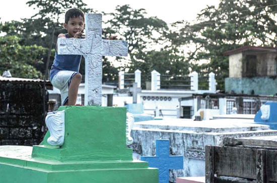 去年,新西兰摄影师丹尼尔·艾瑞克森跨越8000公里,慕名来到菲律宾诺特公墓。跟他的想象不同的是,“那里商店林立,充满浓浓的市井生活气息,有小狗在舔路边排水沟的污水,小孩们光着身子在玩纸牌”。