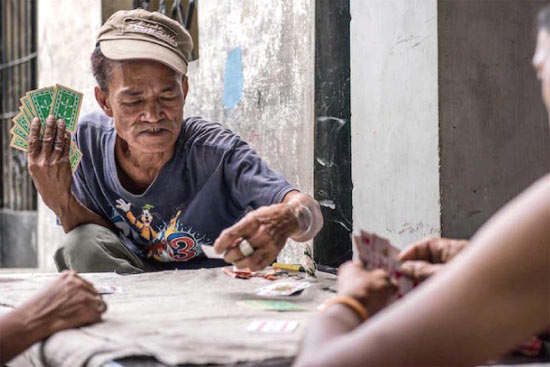 虽然居住的“房屋”有些奇怪,但这里的人们已经形成一套相对平稳的生活秩序。白天,男人们坐在石质棺椁上聊天、打牌、看斗鸡,女人们则在坟头前牵起绳子晾衣服,或通过安放在墓碑旁的电视机观看肥皂剧。到了夜晚,暑气散去,不少人躺在地上和衣而睡。