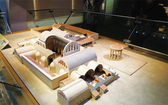 古罗马浴场的收藏部经理苏珊·福克斯告诉我们,很多第一次来到古罗马浴场的游客,会被这里恢弘的规模震撼。实际上,这座浴场在两千年前比现在壮观得多。整个浴场被巨大的穹顶笼罩,阳光从窗户射入,照亮四壁的绘画,景象神圣而壮观。两千年后的今天,这座浴场仍然可以正常运作,原来的排水系统依旧健全。浴池水深1.5米,正好适合游泳。恒定的35摄氏度的水温,也非常适合戏水。可惜,现在的水看上去不是很诱人,因为没有了顶棚,大量的阳光直射浴池,促进了藻类的生长,使池子里的水看上去绿油油的。