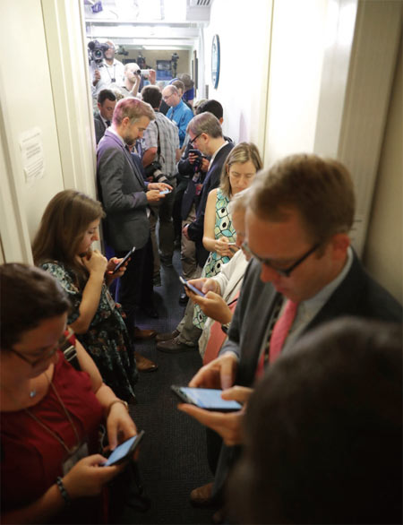 7月21日,白宫召开新闻发布会宣布白宫新闻发言人斯派塞辞职一事,媒体记者等待参会。
