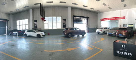 围绕建筑走了几圈,向周边人员确认这家的确是DS品牌4S店后,笔者从后门找到了入口,在维护保养区找到两位工作人员。