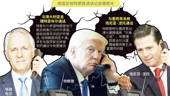 特朗普与澳大利亚总理特恩布尔、墨西哥总统涅托通电话的两份文字记录被曝光。